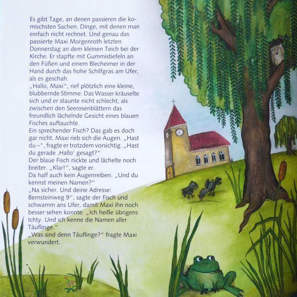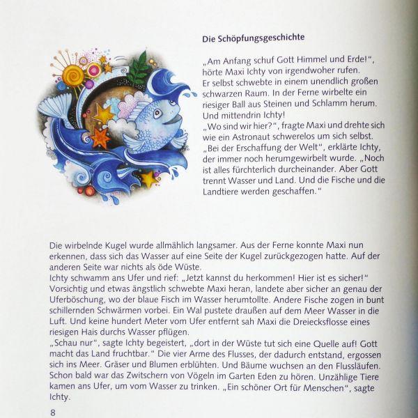 Als zentrale christliche Symbole bilden „Wasser“ und „Fisch“ den roten Faden in unserer personalisierten Kinderbibel. Der Fisch Ichty nimmt den Täufling mit auf eine Reise durch die Welt der Bibel.