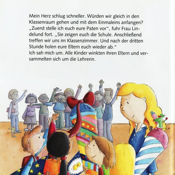 Mein Herz schlug schneller. Würden wir gleich in den Klassenraum gehen und mit dem Einmaleins anfangen? "Zuerst stelle ich euch eure Paten vor", fur Frau Lindelund fort. "Sie zeigen euch die Schule. Anschließend treffen wir uns im Klassenzimmer. Und nach der dritten Stunde holen eure Eltern euch wieder ab."