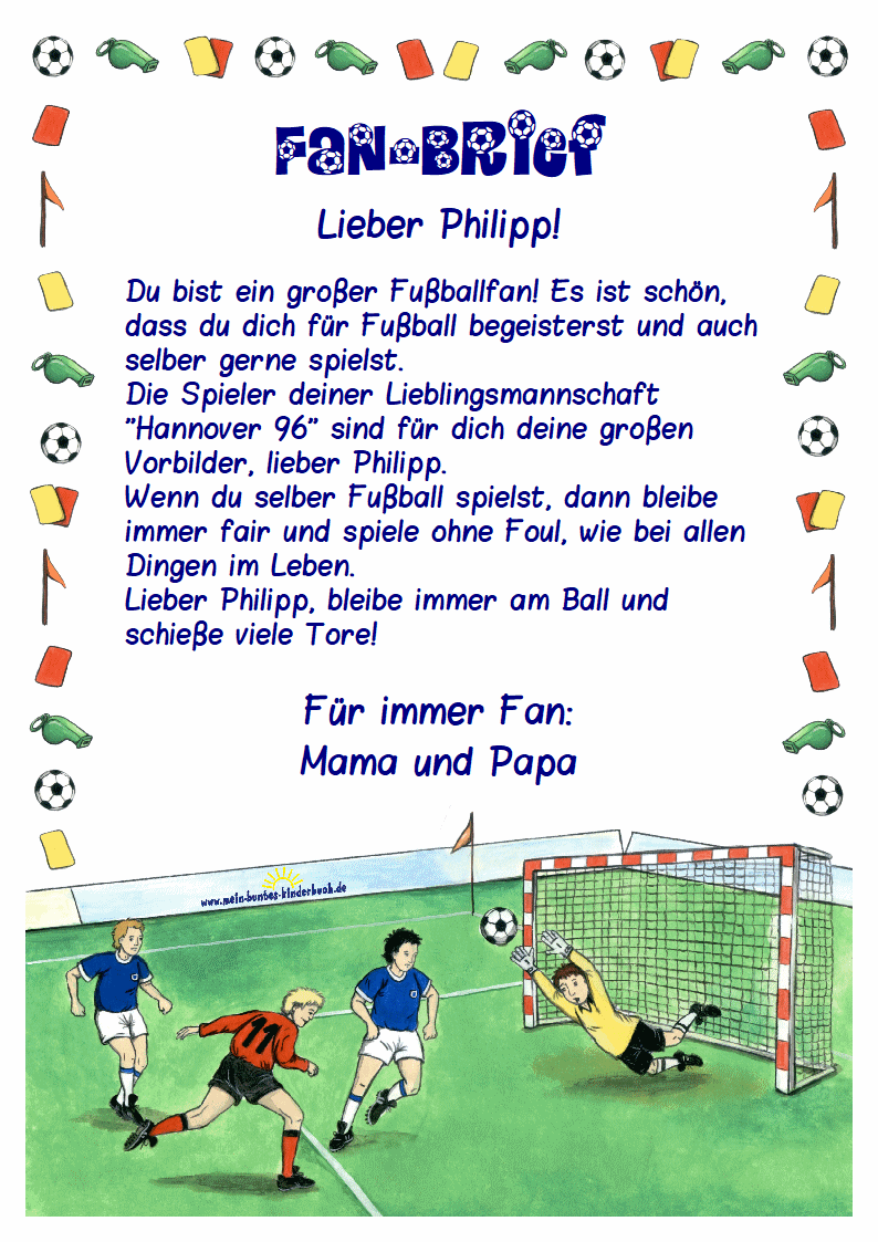 Ein Brief für kleine Fußballfans mit einem Gruß von Ihnen. Die Überraschung schlechthin für Ihr Kind oder Enkelkind oder Patenkind...
